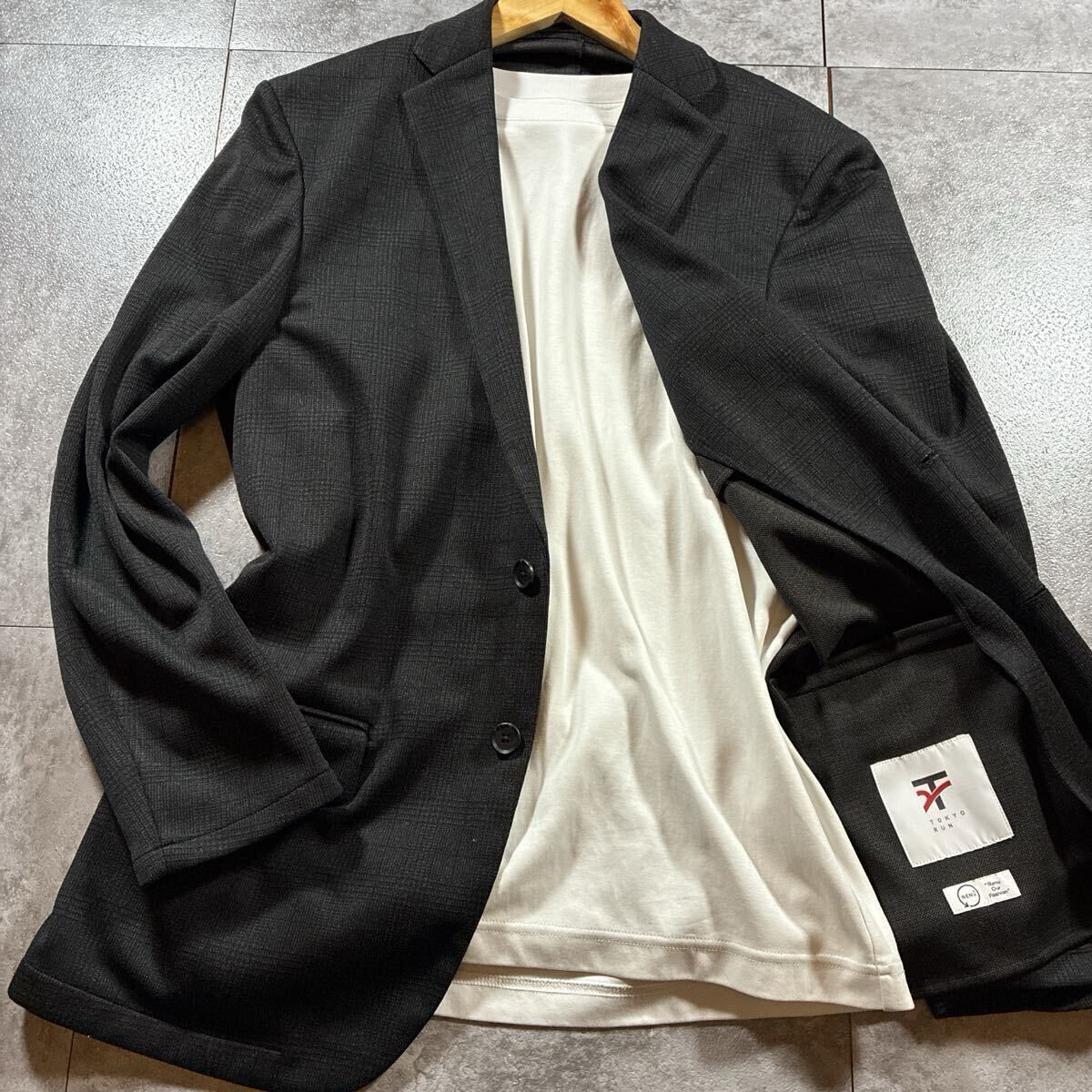 - 【極美品・XL相当】TOKYO RUN トウキョウラン アンコンジャケット テーラードジャケット ブラック ストレッチ素材 メンズ LL 出張 チェック
