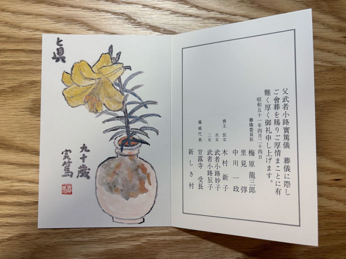 - 武者小路実篤 会葬御礼状 昭和51年 梅原龍三郎 里見弴 中川一政 検)葉書 書簡 志賀直哉
