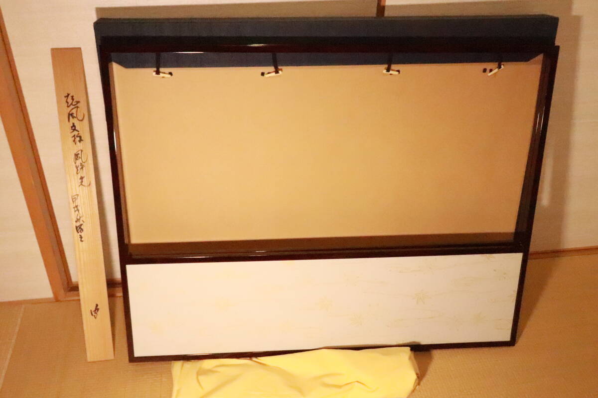 - 【hiro】武者小路千家 官休庵十四代不徹斎宗守 書付 起風文様 風炉先屏風 共タトウ箱 ★検索★ 炉 香合 鉄瓶 茶碗 釜 茶道具 茶杓