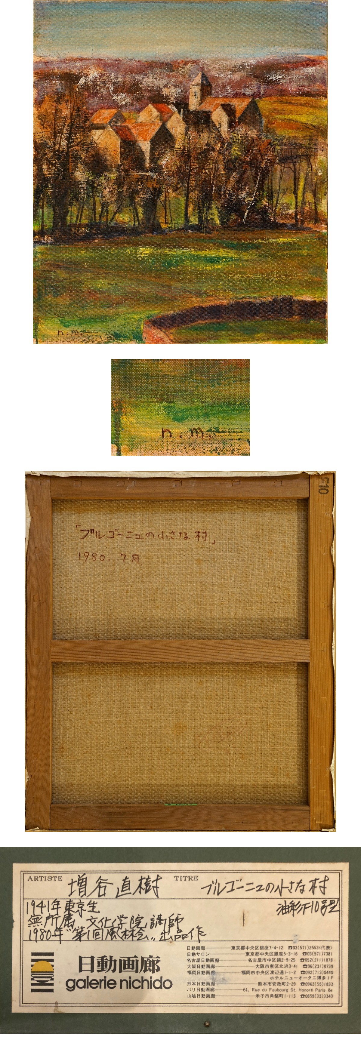 > 【真作保証】増谷直樹 [ブルゴーニュの小さな村] キャンバス,油彩 サイン 10号 日動画廊シール 1980年 第一回風林会出品作品 G75