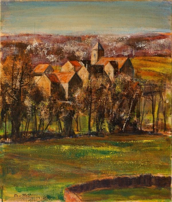 - 【真作保証】増谷直樹 [ブルゴーニュの小さな村] キャンバス,油彩 サイン 10号 日動画廊シール 1980年 第一回風林会出品作品 G75