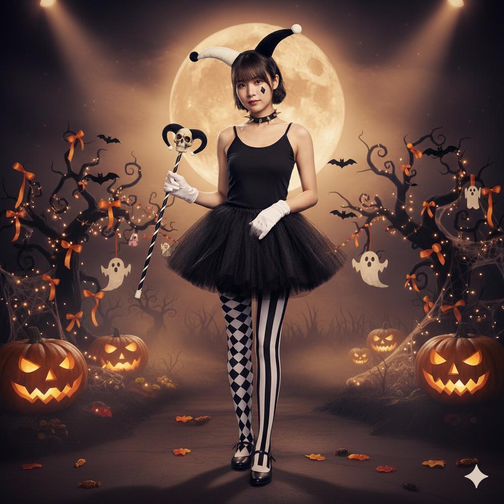 - 【新品】ハロウィン モノクロ ピエロ風 コスプレ 衣装 5点セット