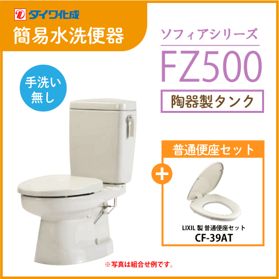 - 簡易水洗便器 簡易水洗トイレ クリーンフラッシュ「ソフィアシリーズ」 FZ500-N00(手洗なし)・普通便座セット ダイワ化成