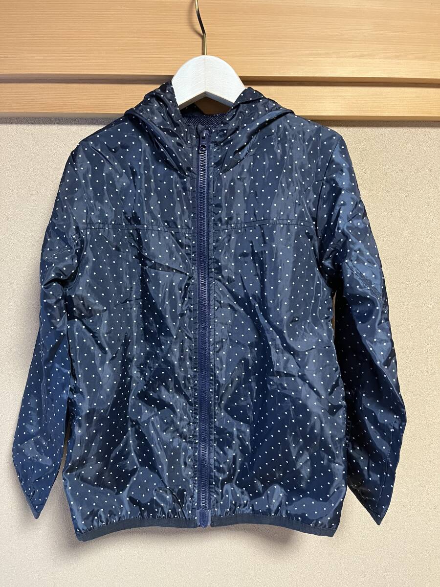 - 無印良品 ジャンパー パーカー 130cm 上着 ネイビー×ドット ポケッタブル