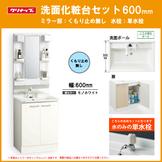 - 洗面化粧台セット(ミラー部くもり止めなし) 単水栓 幅:600mm BGAL60TNTEWJTS,M-L601GAEN クリナップ BGAシリーズ