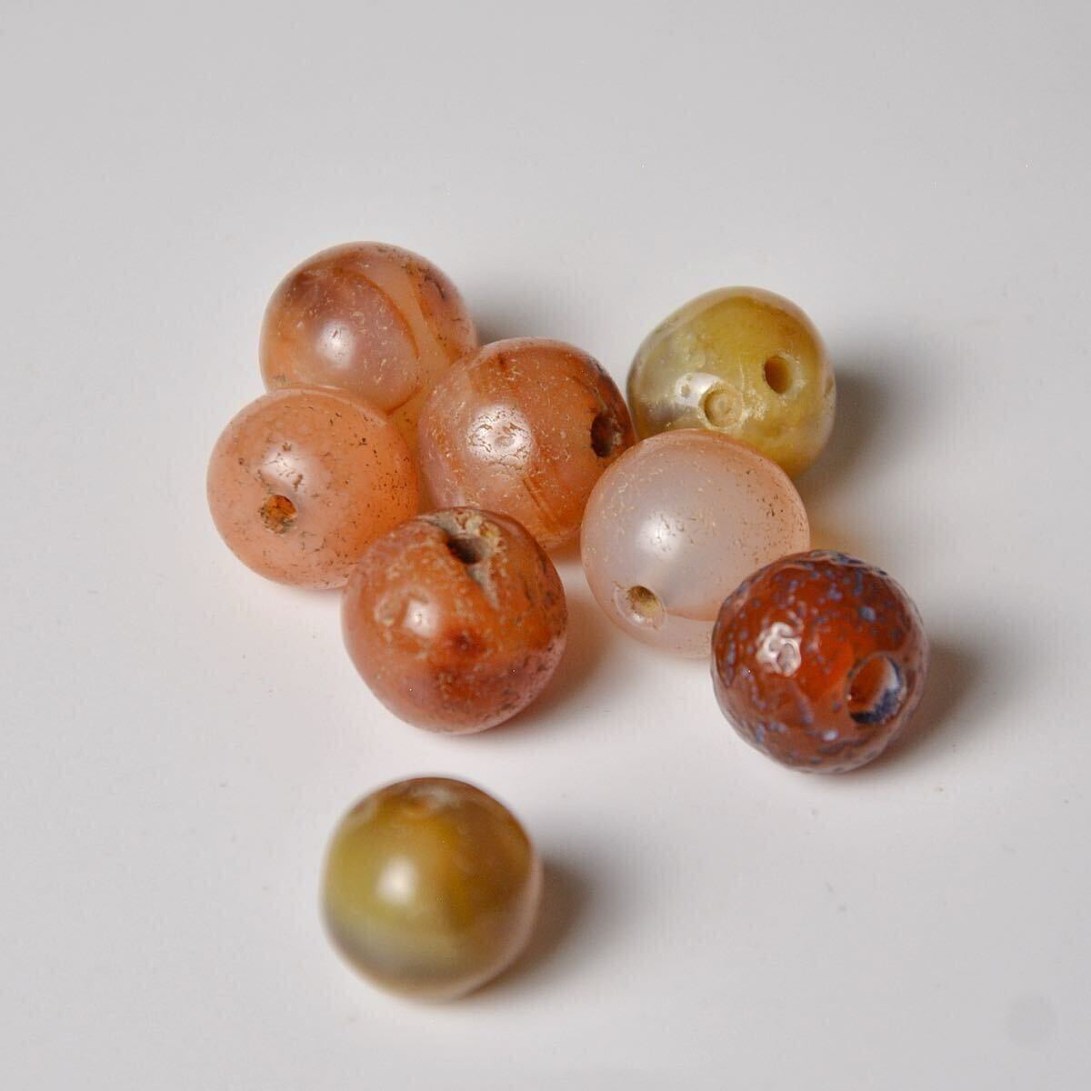- 小舫 時代物 瑪瑙珠 8点セット 検:瑪瑙 天珠 線天珠 眼天珠 チベット 西蔵 古美術 天然石 裸石 珊瑚 とんぼ玉b0425