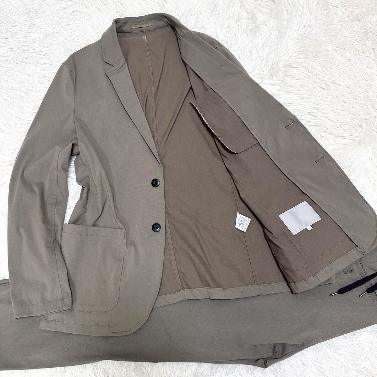 > ABAHOUSE【高ストレッチ素材 洗える 希少Lサイズ相当】アバハウス トラベルスーツ セットアップ ベージュ イージーパンツ 46 ビジネス 伸縮