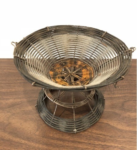 太めのワイヤーを編んだカゴで、吊り下げも可能です。