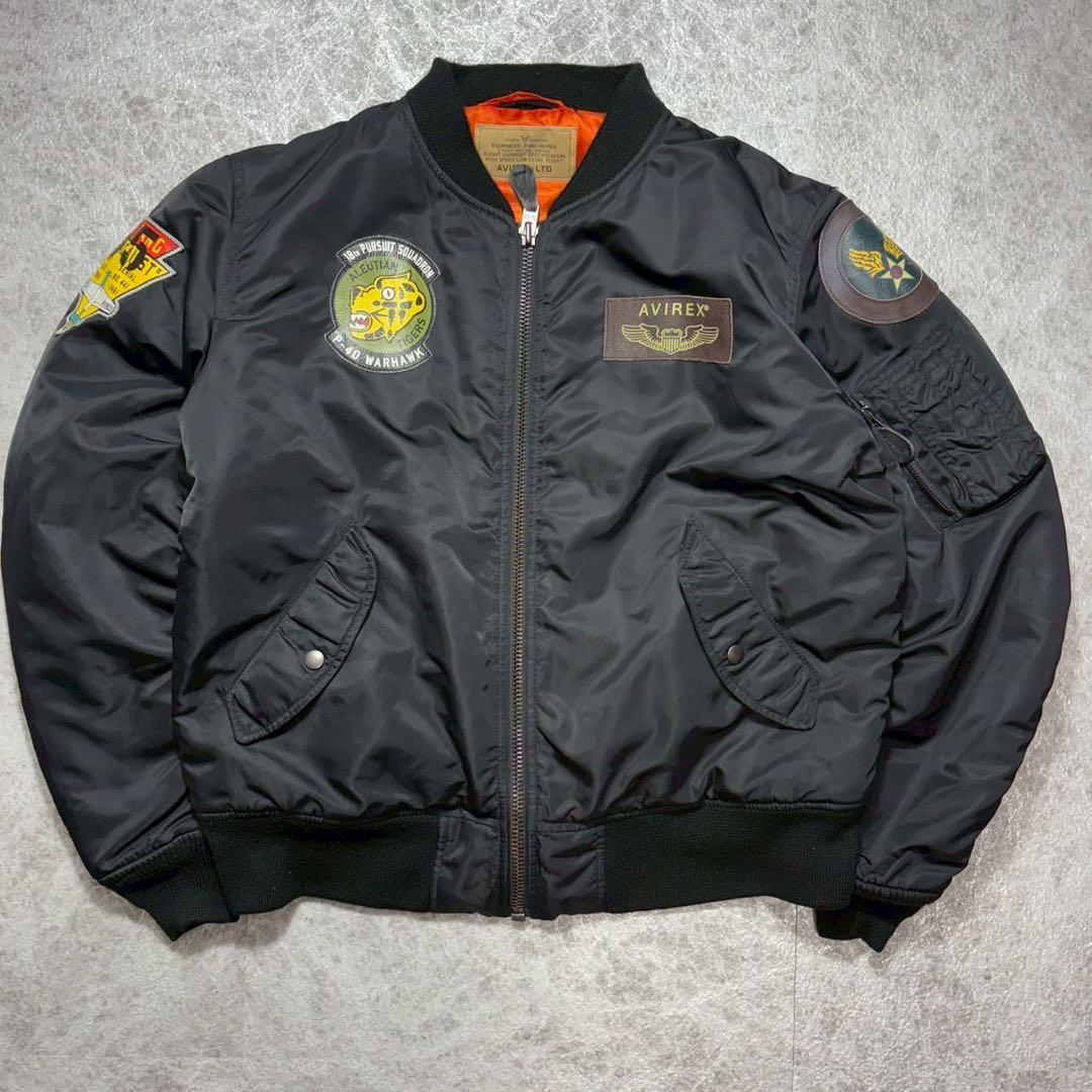 > 1円~ AVIREX MA-1 ALEUTIAN TIGERS フライトジャケット XL アヴィレックス 中綿 バックプリント ワッペン ミリタリー ブラック オレンジ