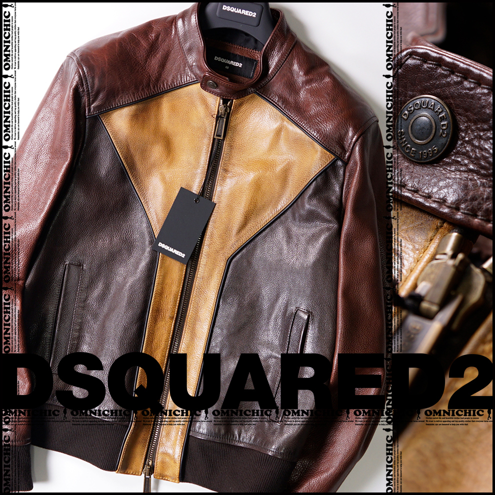 - ■新品446,600円専用ハンガー付【DSQUARED2】ディースクエアード極上マルチカラーが抜群のセンス/シングルレザージャケット52 XL/S74AM1176