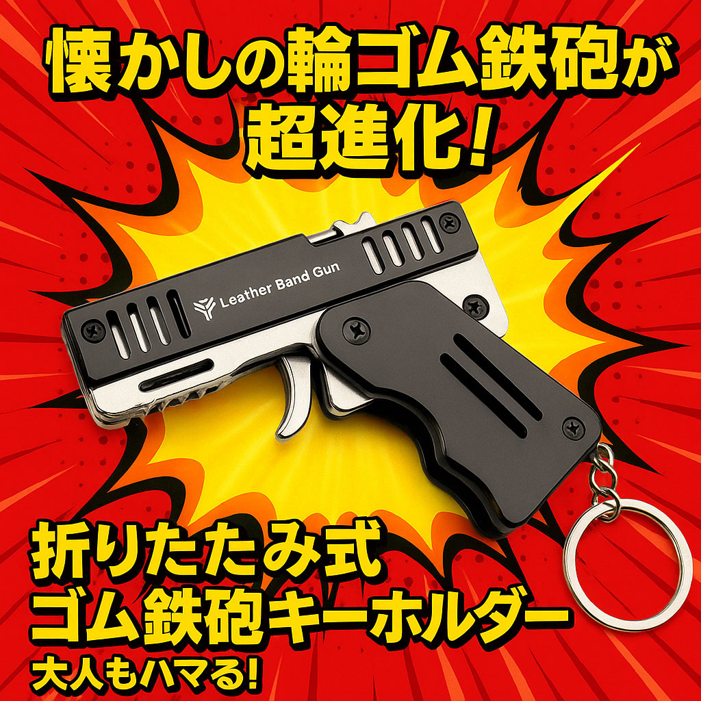 - ゴム鉄砲 キーホルダー 輪ゴム 折り畳み式 ミニ ブラック 連射 5連発 ゴムバンド 小型 金属製 コンパクト ポケットサイズ 小さい 匿名配送