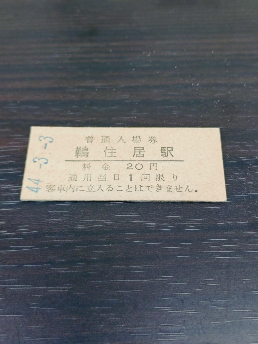 - 国鉄 硬券 普通入場券 鵜住居駅 昭和44年