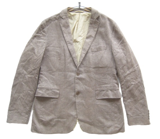 > 極上クロアチア製!!ヒューゴボス HUGO BOSS*麻50% 肘パッチ付き 2つボタンリネンコットンジャケット 48 M ブラウン 茶