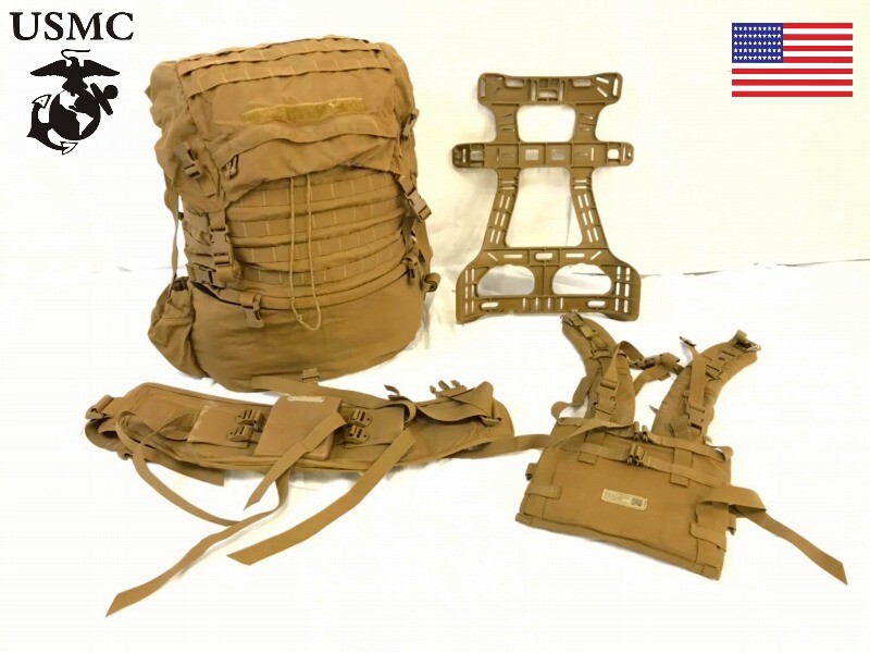 - 難あり【米軍放出品】USMC PACK 4点セット メインバッグ フレーム ヒップベルト ショルダーハーネス リュック ミリタリー(120)HJ3PK-W#25