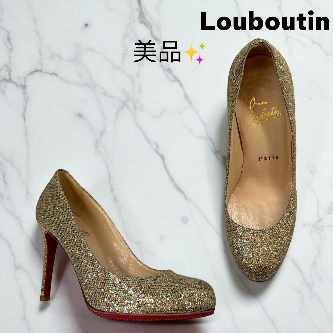 - 美品 クリスチャンルブタン グリッターパンプス ゴールド 35 約22cm Louboutin レディース