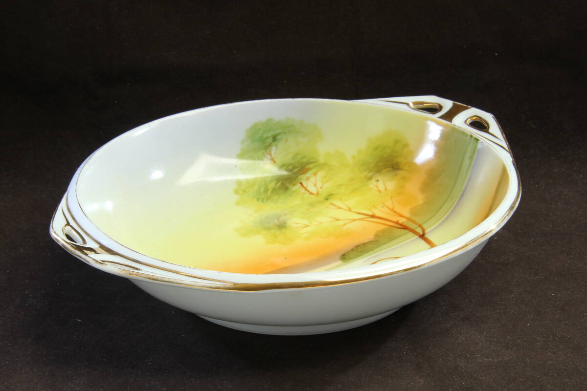 - 3090 オールドノリタケ ハンドル付ボウル ライジングサンNIPPON 大正元年頃 金彩 湖畔の風景