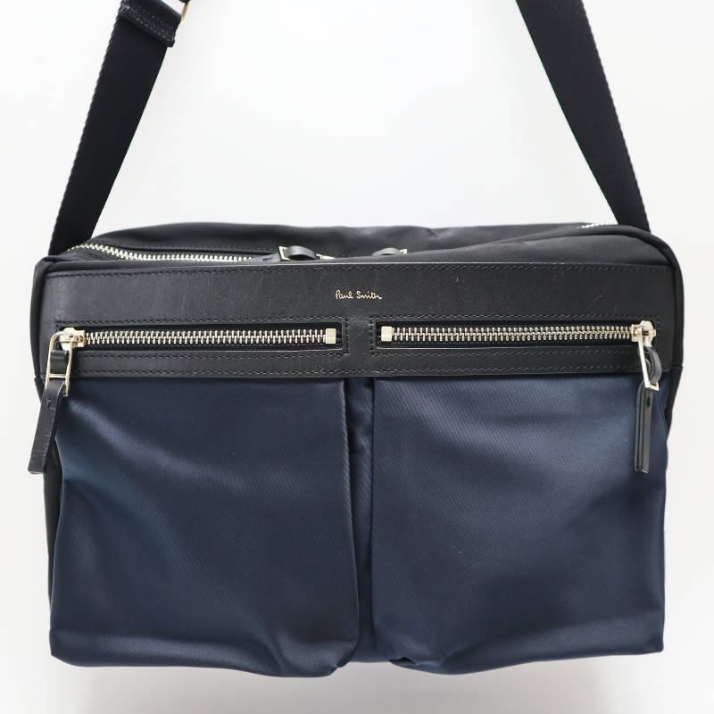 > Paul Smith ポールスミス ナイロン/レザ― ショルダーバッグ ネイビー/ブラック S07-k154