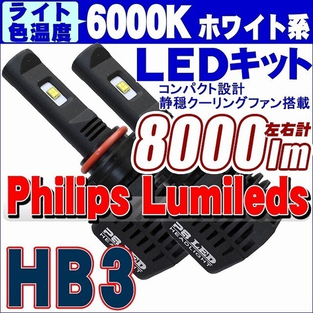 > 【6000K】フィリップスLEDキット 8000lm(左右計) HB3 静音省スペースファン ヘッドライト フォグランプ 12V/24V