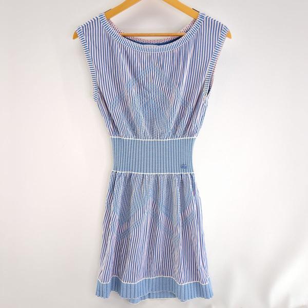 - CHANEL シャネル レディース ノースリーブワンピース スカイブルー ストライプ SIZE 38 P48004K06130 表面/裏面 汚れ有 ◆2002