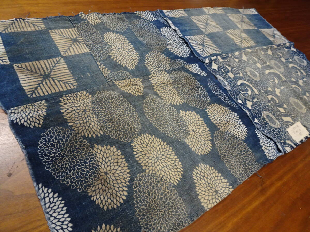> 1005-5 古布木綿 藍染型染継ぎ接ぎ布-2枚 洗濯済 リメイク素材 50cmx57cm-2枚