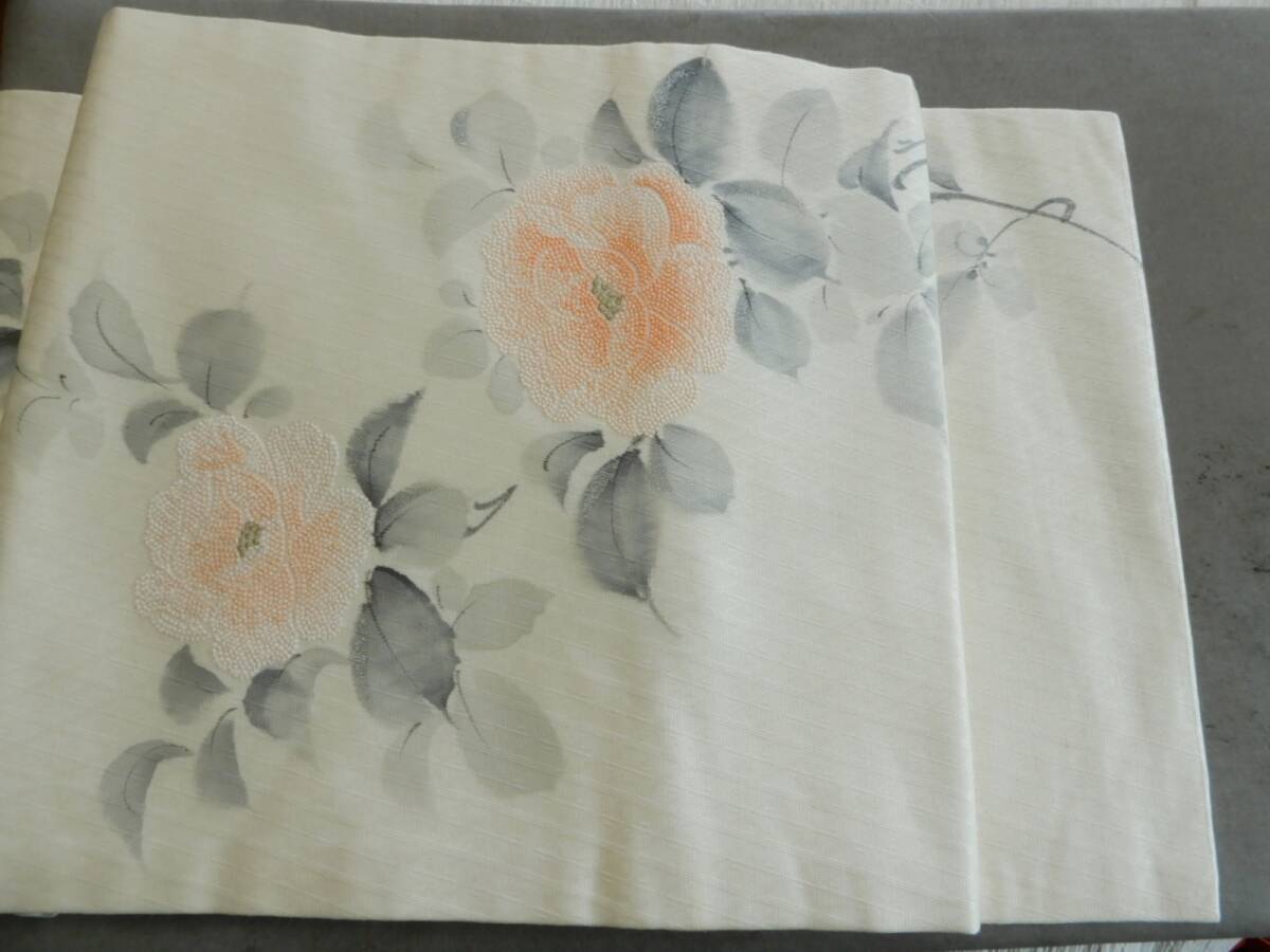 - <銀の斧>正絹・淡い色調の相良刺繍名古屋帯