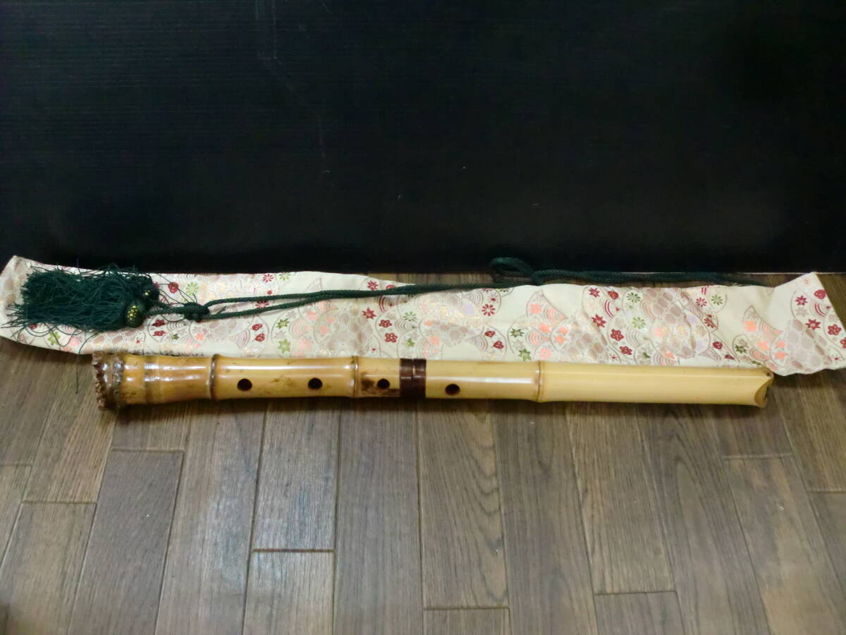 > ♪♪【7J6⑨g】和楽器尺八 竹製 1尺8寸 布袋付き 銘あり 在銘 全長56 斎童♪♪
