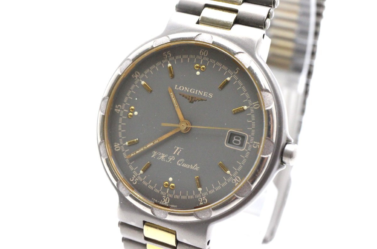 > 【ト石】 LONGINES ロンジン SWISS スイス Conquest コンクエスト V.H.P クォーツ グレー文字盤 メンズ腕時計 リューズNG EAZ01EWH1B