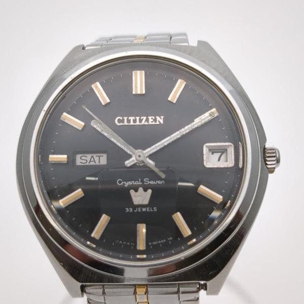 - シチズン クリスタルセブン 自動巻 SN-3-U 33石 デイト 黒文字盤 メンズ 腕時計 稼働品 アンティーク 中古 ◆2008