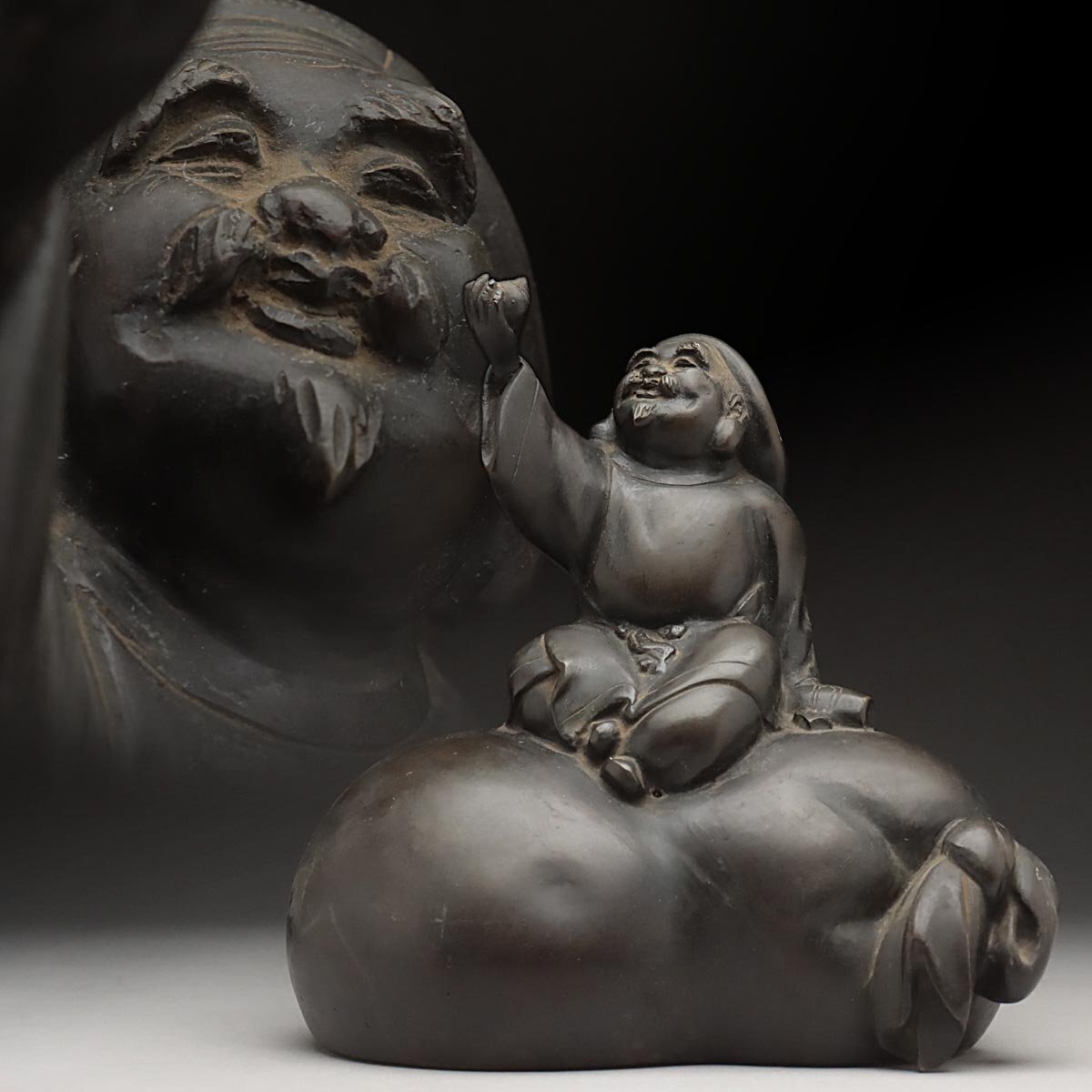 > 時代 金工 鋳銅 大黒天 像 置物 高22cm 重3.3kg「宝珠持大黒天像・大黒天財神・大国主命」七福神 床飾り 銅像 美術品 ブロンズ