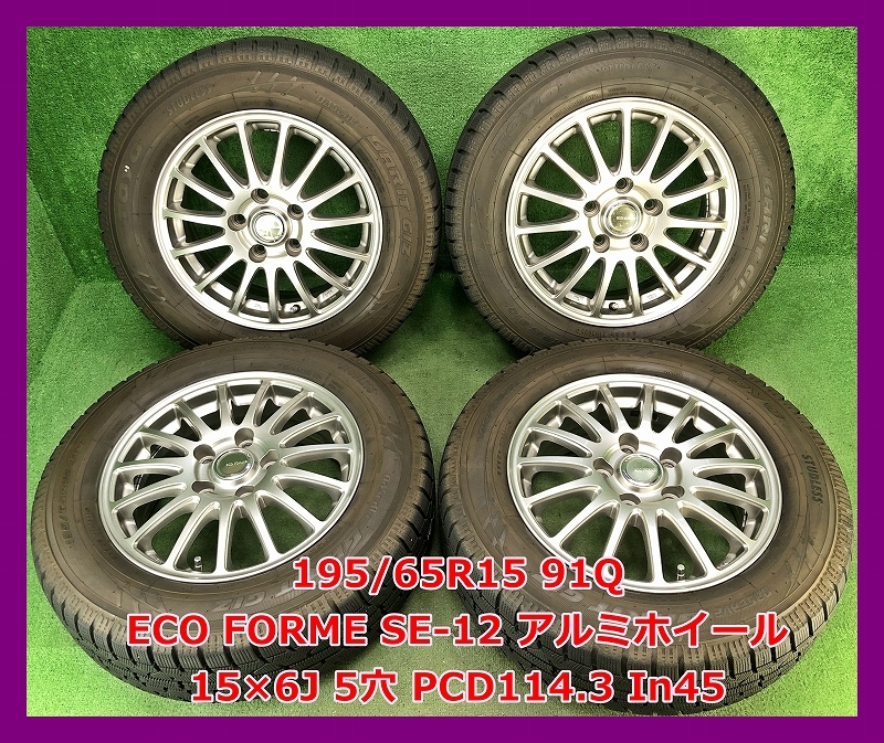 - 2022年製 195/65R15 91Q TOYO GARIT GIZ 中古 スタッドレス/ECOFORME SE-12 アルミホイール付き 4本 5穴 PCD:114.3 IN45