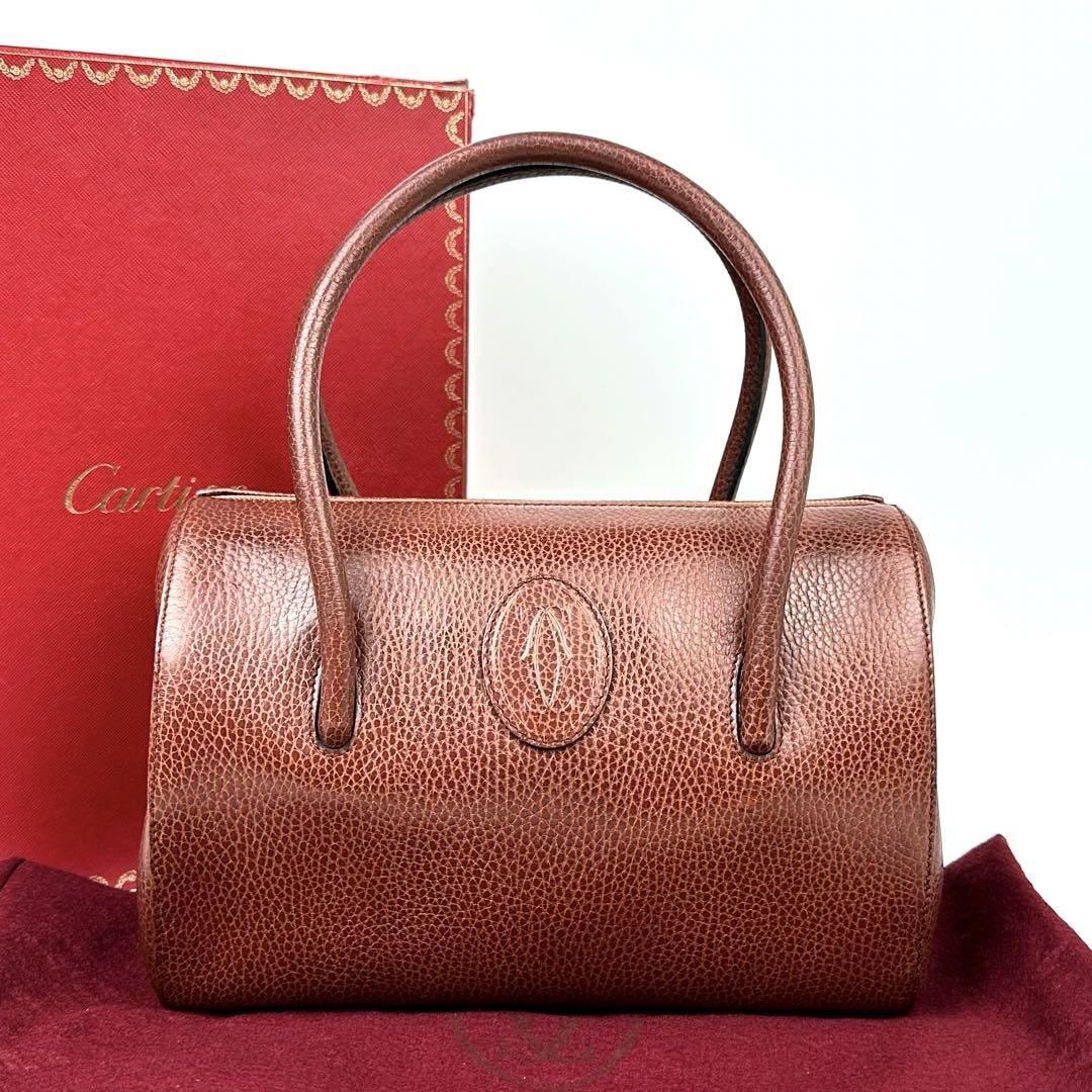 - 美品 Cartier カルティエ マストライン マストドゥ ハンドバッグ ミニボストン ゴールド金具 裏地総柄 男女兼用 レザー ブラウン 人気