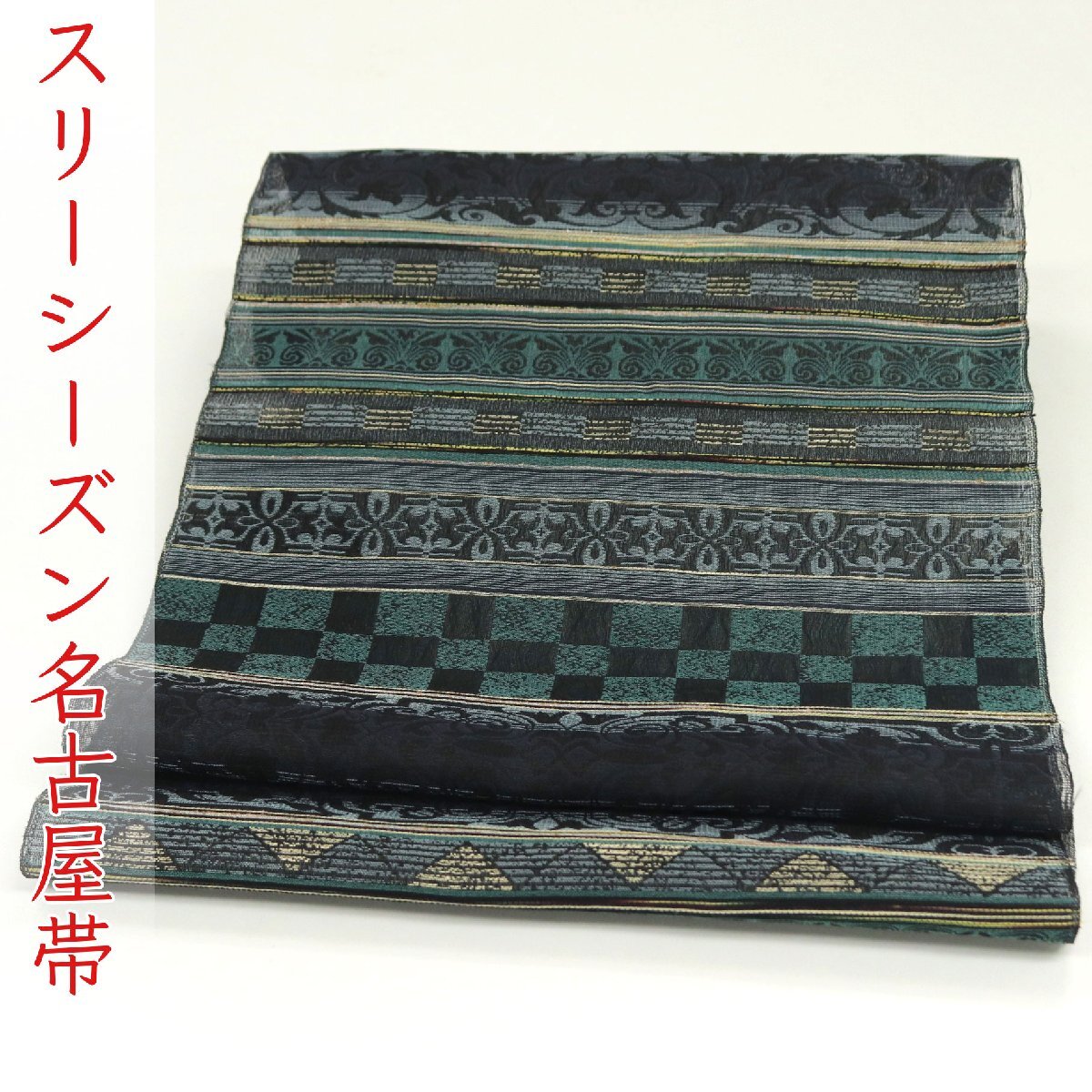- 和遊館 即決ona4566 西陣織 九寸 全通 名古屋帯 スリーシーズン お仕立て付き
