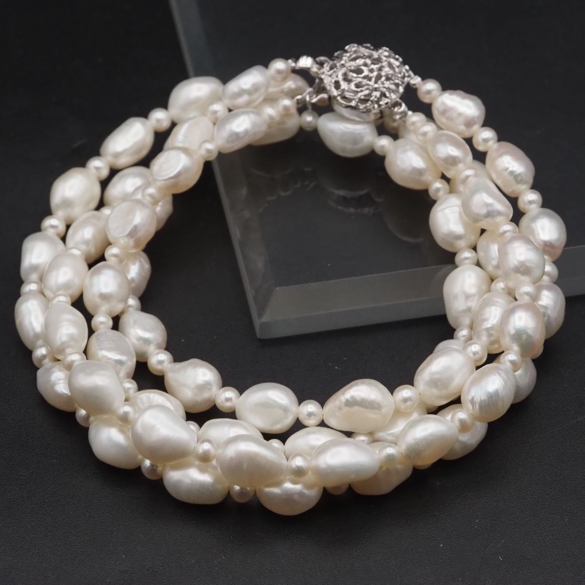 - G261 淡水真珠 パール SILVER刻印 ネックレス 2連 デザイン シルバー 6月誕生石
