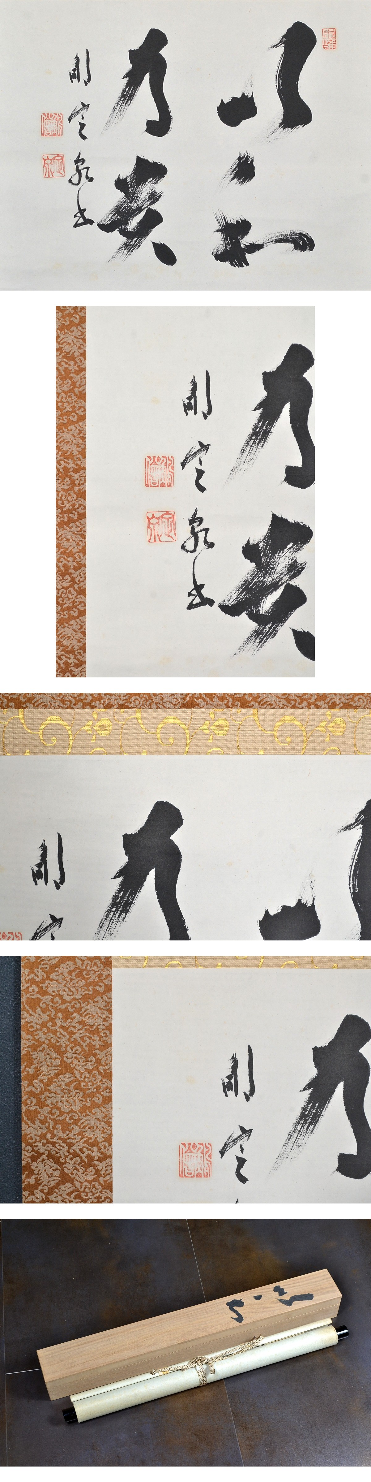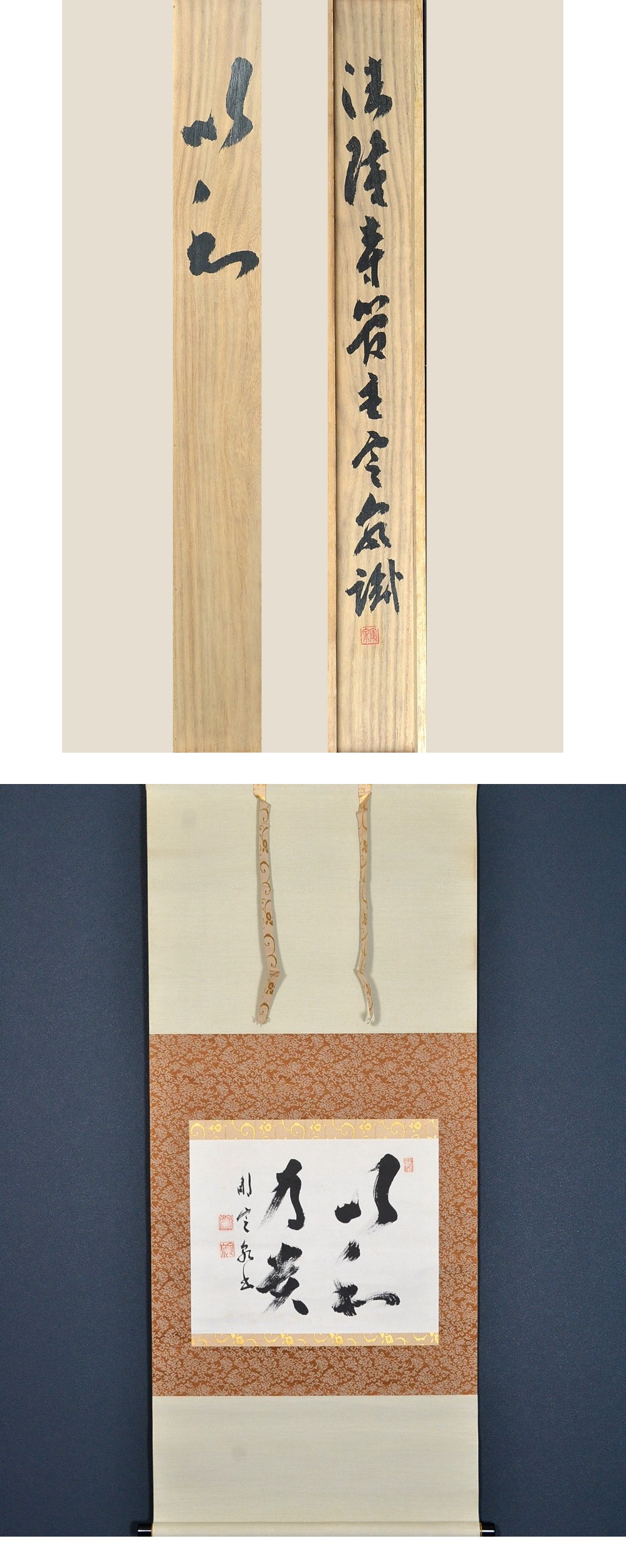 - 105代法隆寺管長大僧正 間中定泉「以和為貴」真作共箱 佐伯定胤師事 奈良斑鳩 茶席の禅語 茶掛け 掛け軸 掛軸 墨蹟 墨跡