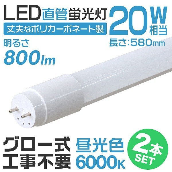 - 【送料無料 2本セット】1年保証付き 直管 LED蛍光灯 20W形 58cm 高輝度SMD グロー式 工事不要 電気 照明 会社 事務所 店舗 オフィス 新品