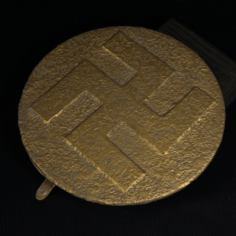 > 左万字 金塗 木製 家紋 前立 前立て オス 真鍮 鶴首 等身大 甲冑 兜 鎧兜 武具 検/蜂須賀 小六 正勝 仁王 samurai armour 24k a616man k24