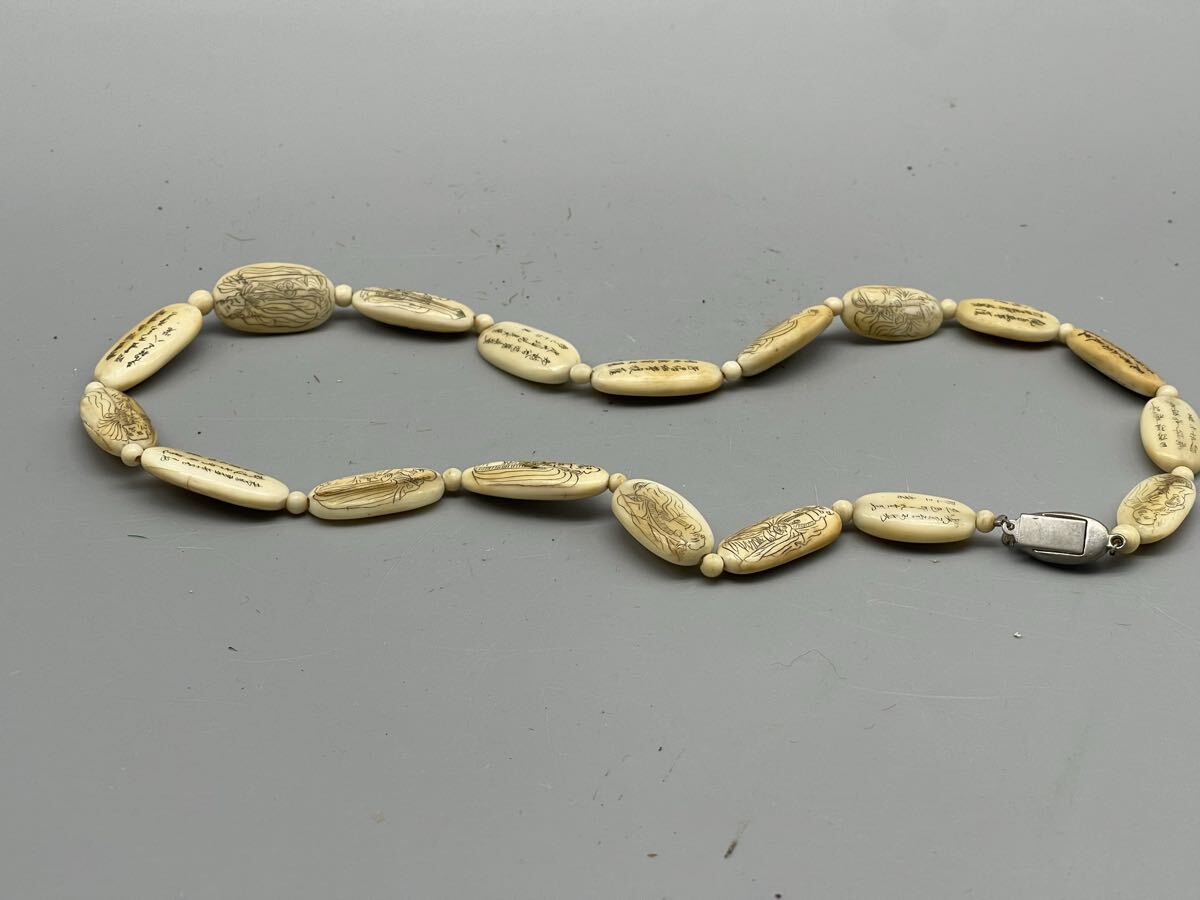- 古日本★明治時期★根付 ネックレス古詩人物刻絵あり精彫