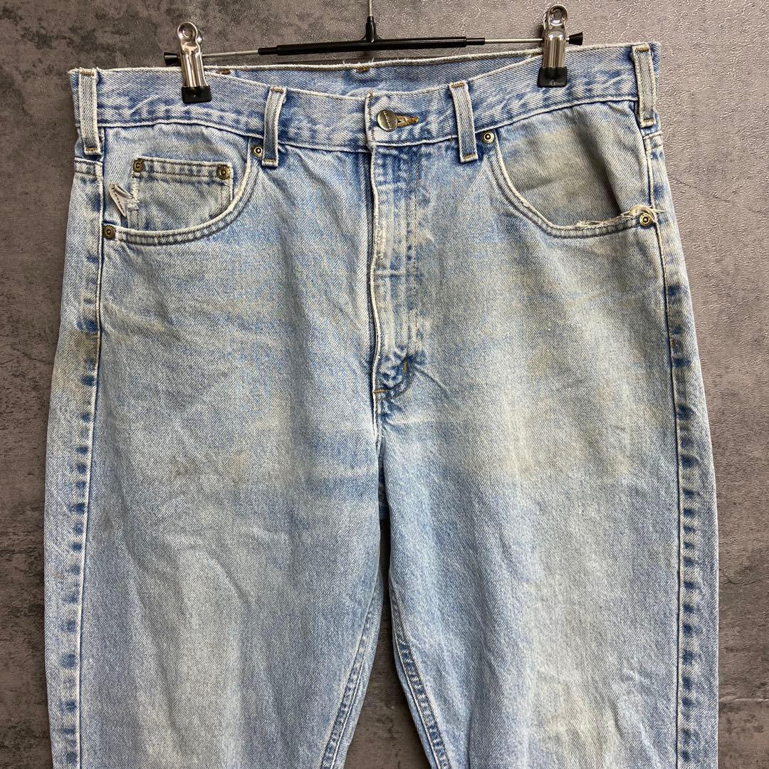 - カーハート USA古着 ブルーデニムジーンズ レザーパッチ M相当【5983】