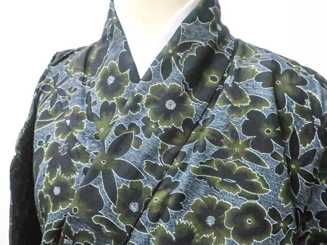 - 《古美術京松》【着物】セミアンティーク 小紋 単衣 花柄 身丈約157cm 裄丈約64cm kyo7z04-218