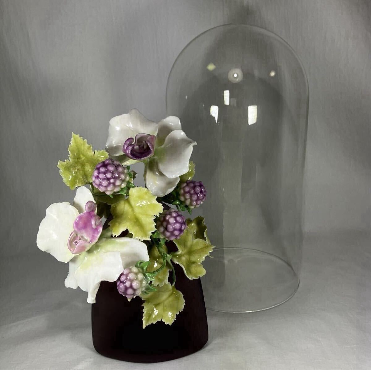 - 【造花】蘭?の花 ガラスドーム付【昭和レトロ】フェイクフラワー アートフラワー 仏花 ラン