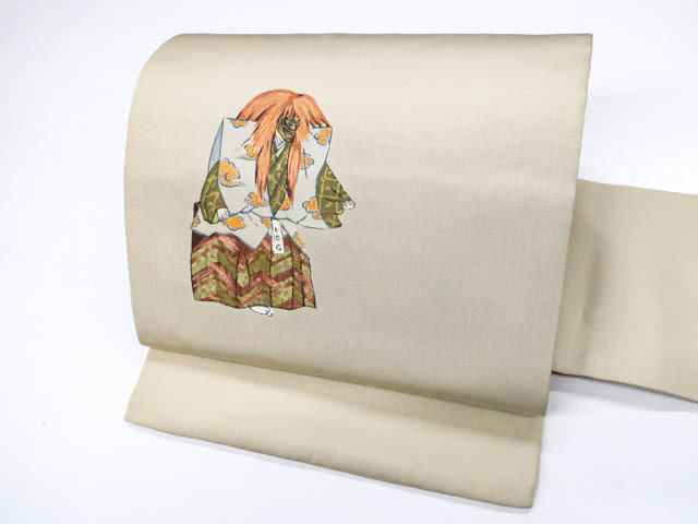 - 《京都一輝堂》【着物】 九寸名古屋帯 お太鼓柄 歌舞伎文 落款入り 24b-2472