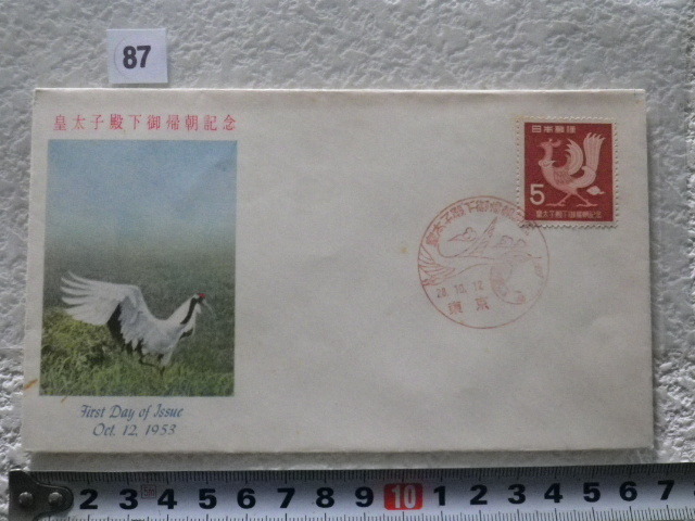 - FDC 皇太子殿下御帰朝 1953年 1貼1消 説明書無 郵便文化部●87●