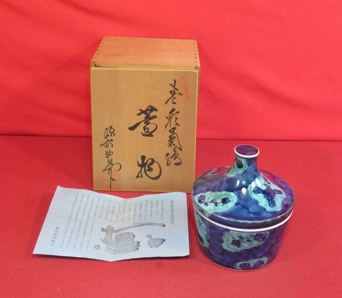 > 茶道具『源右衛門 青彩菊文蓋物(径11,8×高13㎝) 在銘「源右衛門」共箱』茶事 茶道教室 茶会席料理 裏千家 表千家 千家十職 七事式 茶懐石