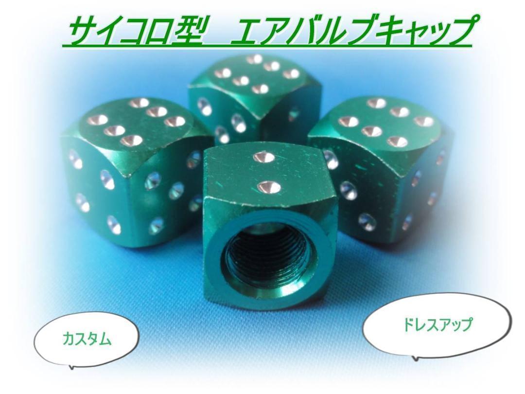 > 匿名配送送料無料 どんな車でもOK サイコロ型 エアバルブキャップ 4個セット グリーン トヨタ 日産 ホンダ 三菱 マツダ ダイハツ スズキ