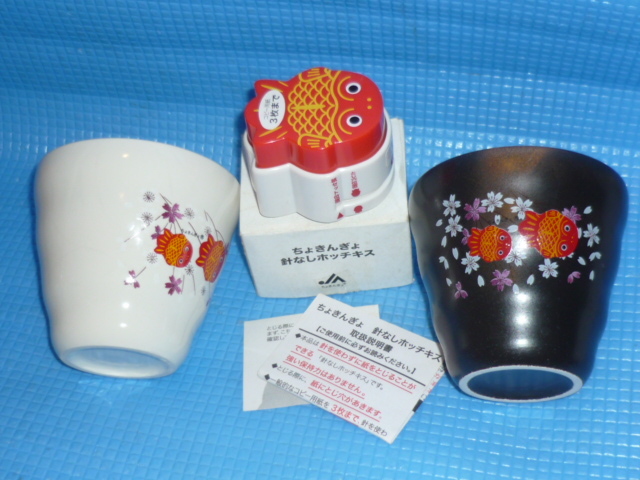 - C★未使用・非売品★JAバンク ちょきんぎょ陶磁器フリーカップ ペア(2個)とJAバンク ちょきんぎょ 針なしホッチキス
