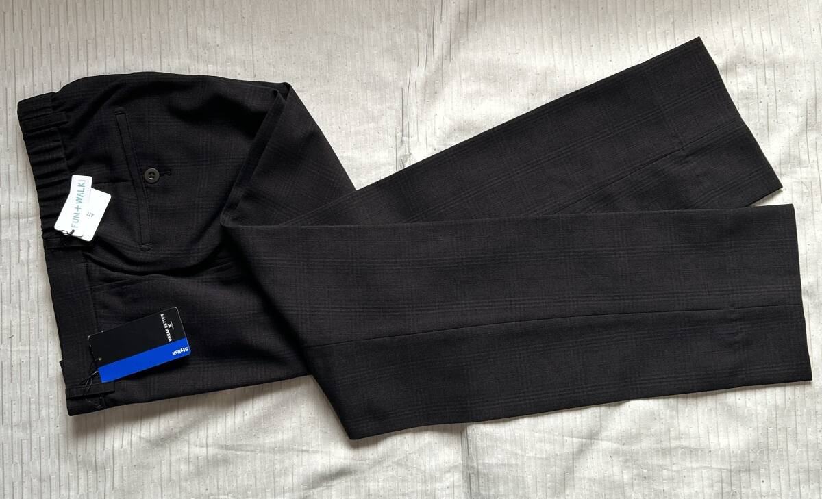 > スラックス スタイリッシュパンツ URBAN SETTER ウエスト79cm 股下76cm こげ茶チェック柄 ウエスト伸縮ゴム■■未使用品