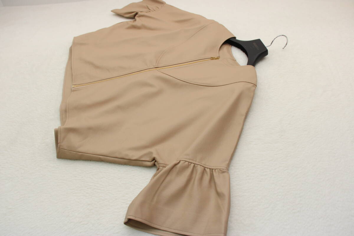 - 4664 新品 ノーカラーVヨークレザージャケット フリー ベージュ