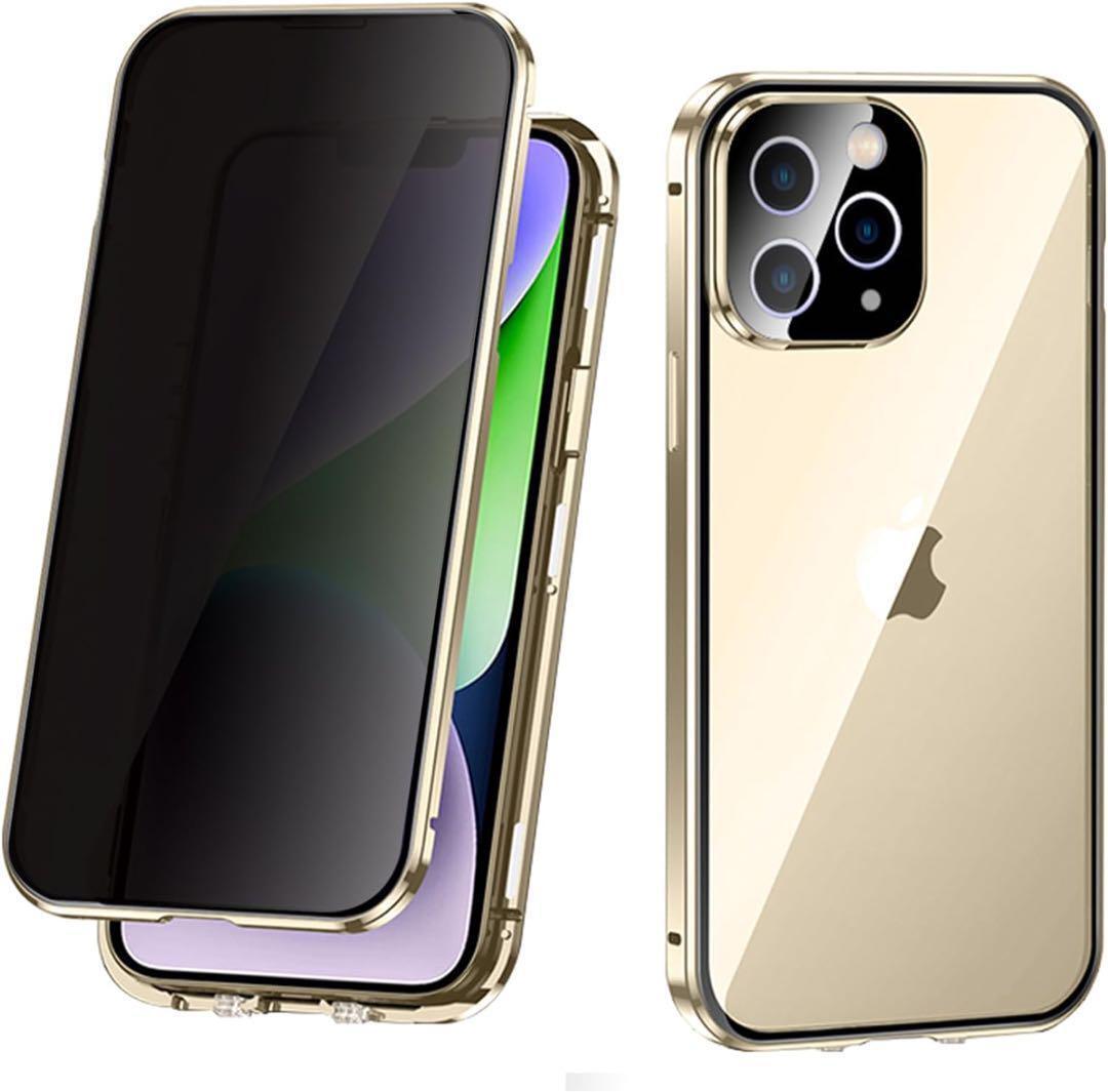 > iPhone 15 Pro Max ケース [ ロック機能付き+マグネット式 ] 両面9H強化ガラ カメラレンズカバー一体型 360°全面保護 アルミ バンパー