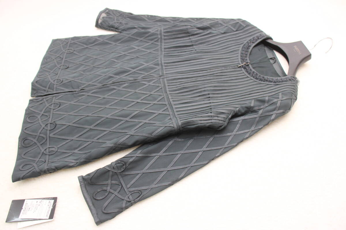 - 3944 新品タグ付き 高級羊革レザーロングジャケット グリーン9号 定価¥76,000+税