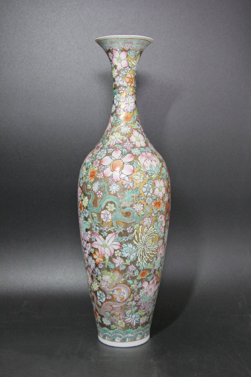 - <聴雲> 花瓶 中国薄胎磁器 花龍文 色絵磁器 中国古玩 骨董品 古美術品 Y1-242